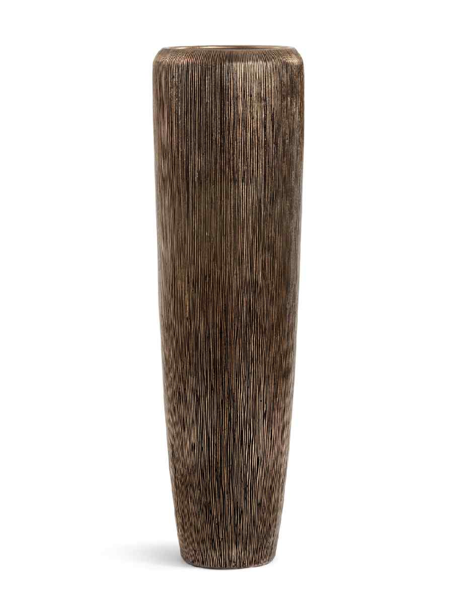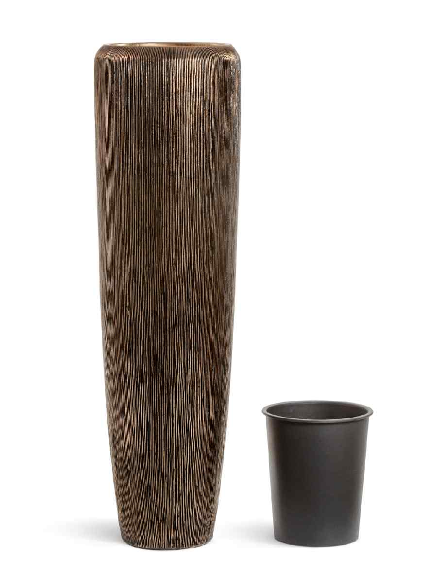 Кашпо напольное для цветов, TREEZ Effectory Wow, конус, керамический горшок, тёмное матовое золото, 117×34 см, 95/10 л, для интерьера, для улицы