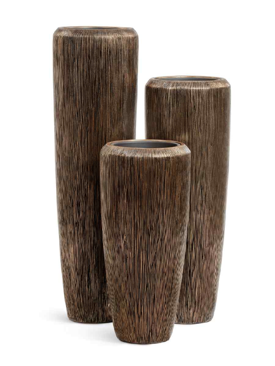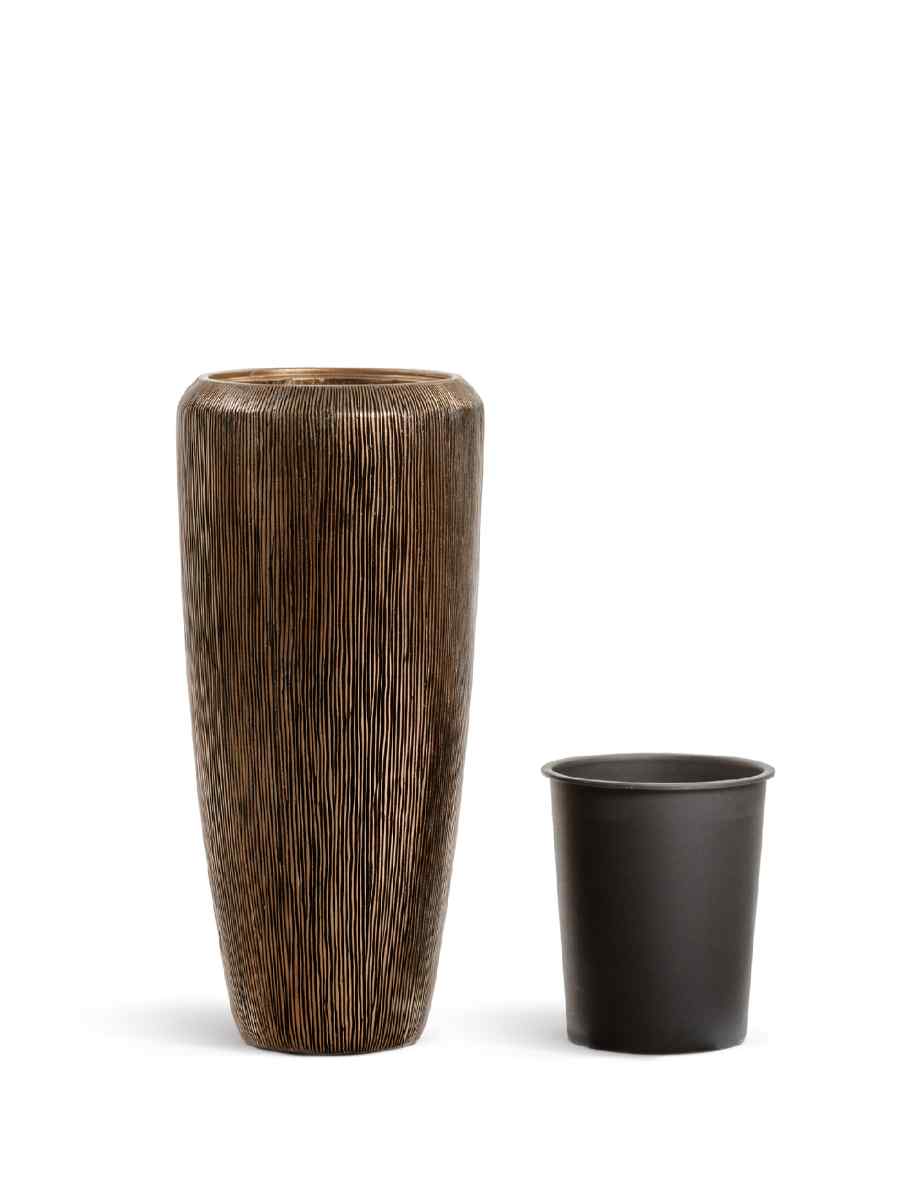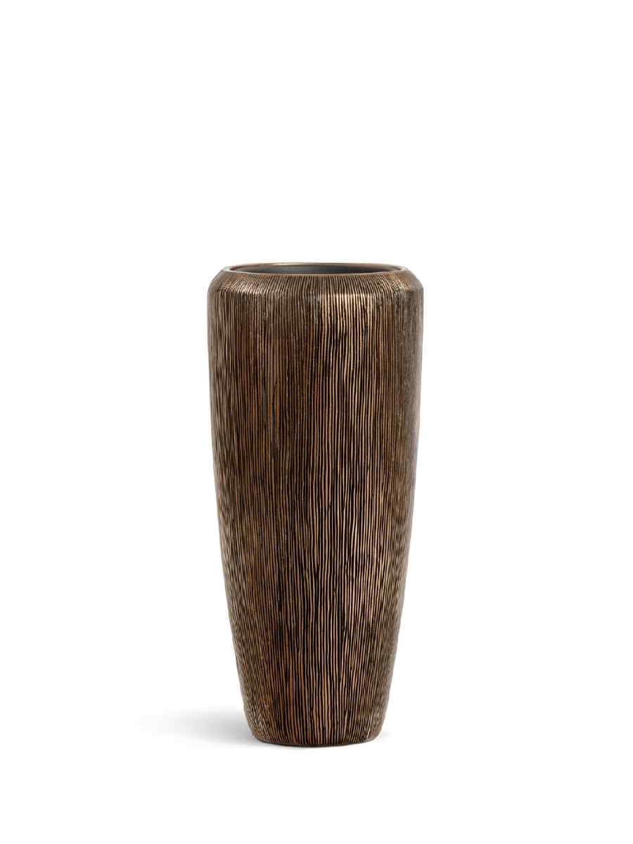 Элегантное кашпо напольное TREEZ Effectory Wow — это стильный акцент в любом пространстве. Его изысканный конусообразный силуэт и глубокий оттенок тёмного матового золота создают впечатление роскоши и гармонии. Такой керамический горшок для цветов не только подчёркивает красоту растений, но и становится частью интерьера или экстерьера.