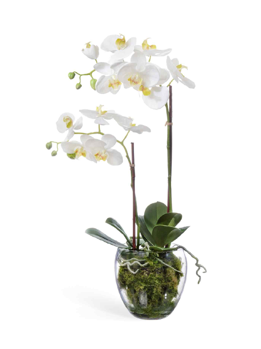 Дизайнерская композиция Орхидея Фаленопсис белая с мхом, корнями, землёй, Treez 10.0611066WHGL60