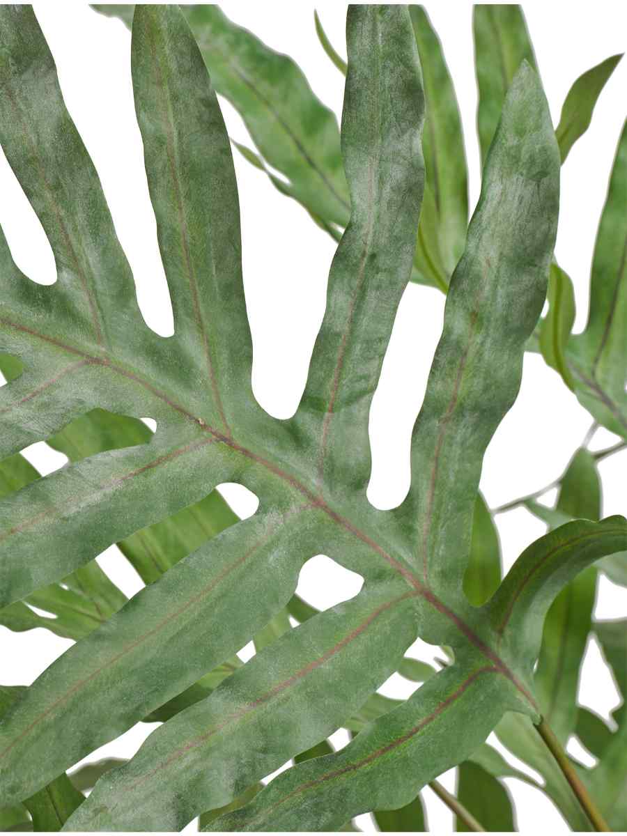 Фикус выполнен из качественного синтетического материала, который максимально точно передаёт текстуру и оттенки настоящих листьев. Глубокий зелёный цвет выглядит свежо и натурально при любом освещении, а плотная структура листвы создаёт ощущение живого растения. Благодаря этому декоративные растения такого уровня становятся гармоничным дополнением к любому интерьеру.