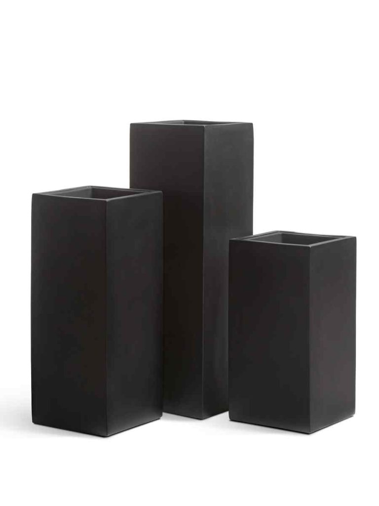 Кашпо напольное для цветов, TREEZ Effectory Black Stone, куб, керамический горшок, антрацит, 97×31 см, 93/12,5 л, для интерьера, для улицы