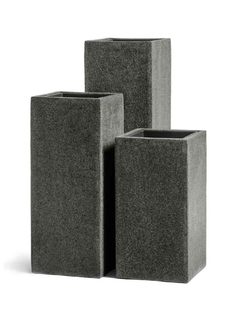 Кашпо напольное для цветов, TREEZ Effectory Stone, куб, керамический горшок, тёмно-серый камень, 75×31 см, 72/12,5 л, для интерьера, для улицы