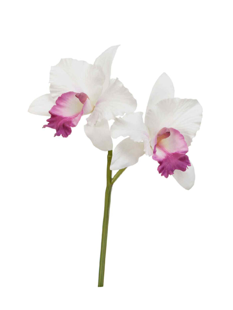 Искусственные цветы Орхидея Каттлея белая с тёмно-розовым язычком, Treez 30.0616198WH