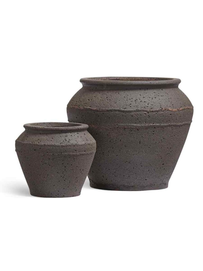 Кашпо напольное для цветов, TREEZ ERGO Nero, чаша-амфора, керамический горшок, чёрный туф, 29×33 см, 20 л, для интерьера, для улицы