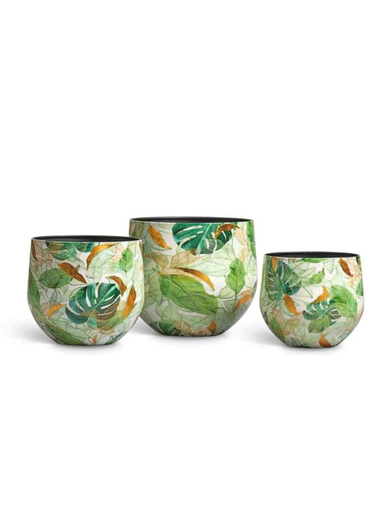 Кашпо напольное для цветов, TREEZ Effectory Savage Garden, чаша, керамический горшок, белый с зелёным, 29×33 см, 23 л, для интерьера, для улицы