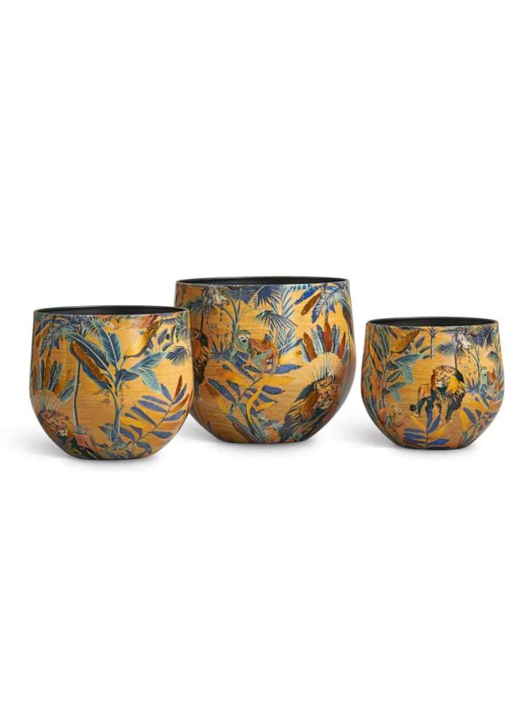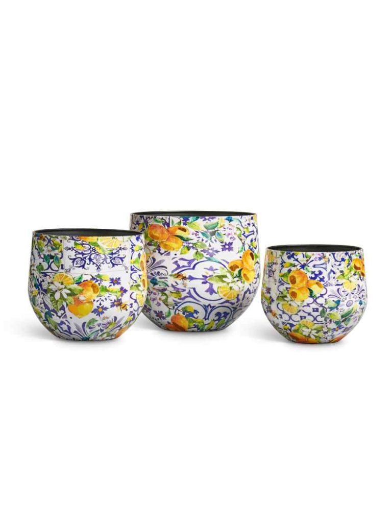Кашпо напольное для цветов, TREEZ Effectory Savage Garden, чаша, керамический горшок, терракот и синий, белый, синий, жёлтый, 29×33 см, 23 л, для интерьера, для улицы