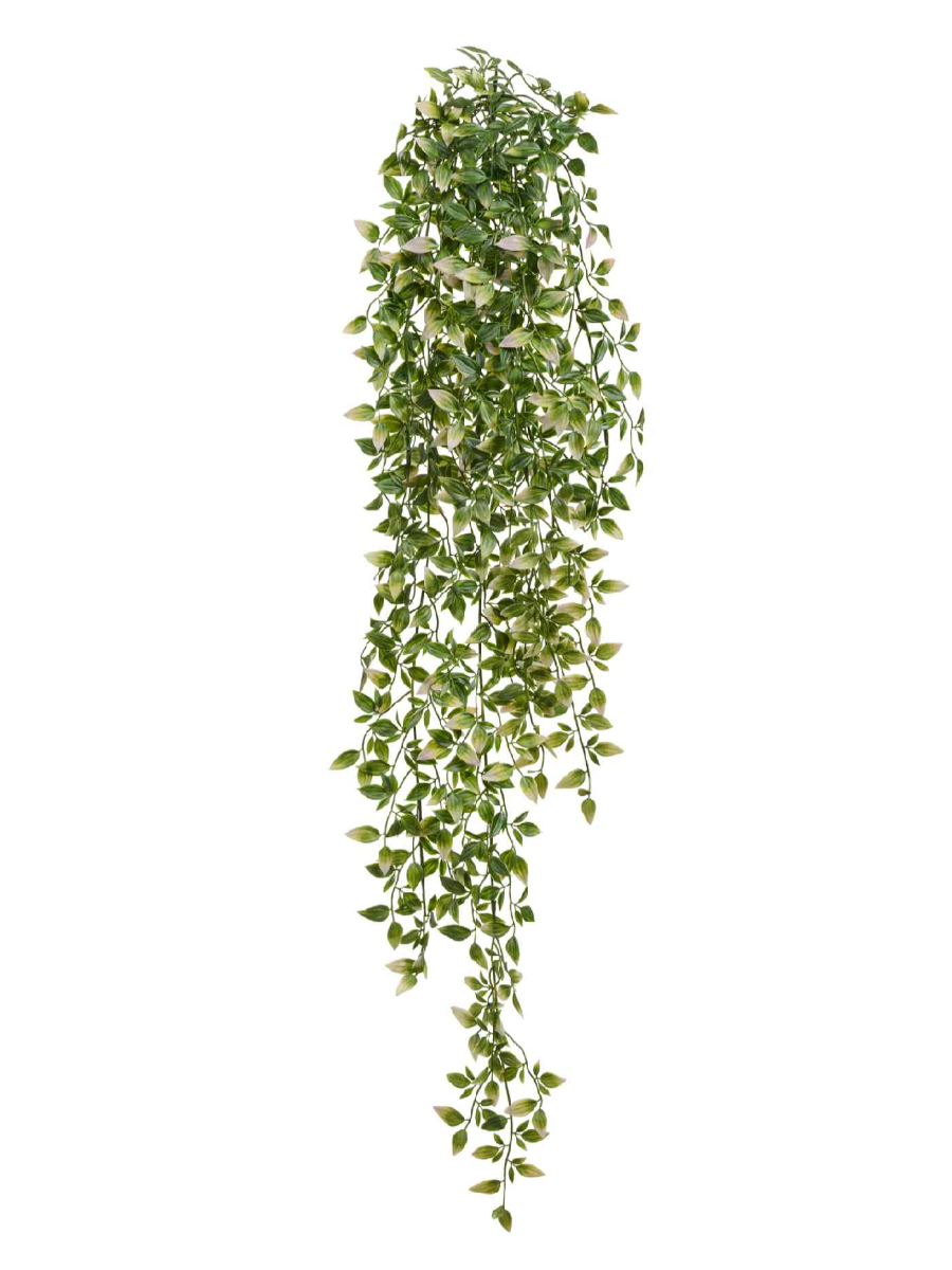 Эта ампельная традесканция выполнена из высокотехнологичного пластика, что позволяет ей точно имитировать фактуру и цвет настоящих листьев. Изящные зелёные листья с розовыми прожилками создают эффект живого декоративного растения, которое оживит любое пространство и придаст ему уют.